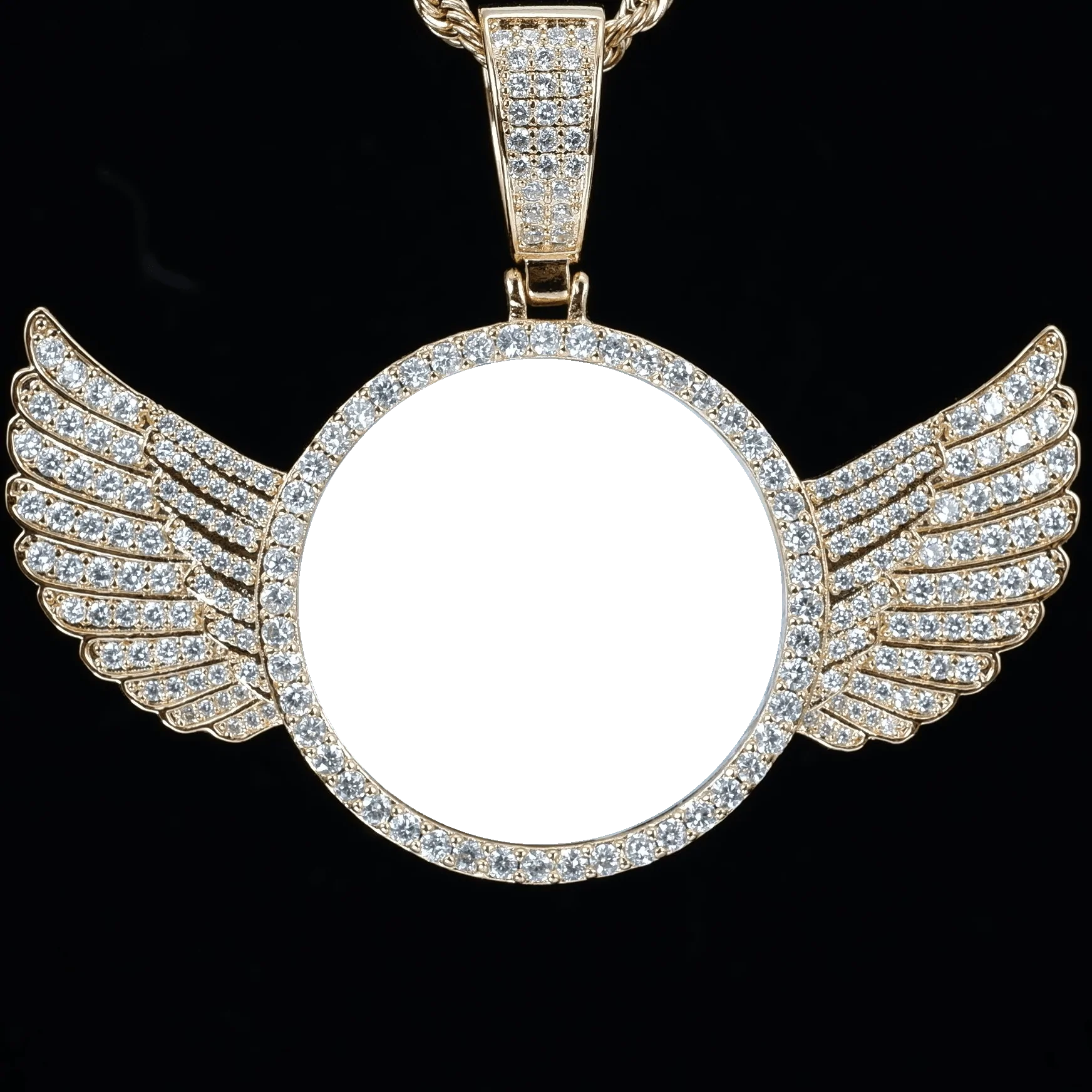 Custom Wing Photo Pendant - White Gold