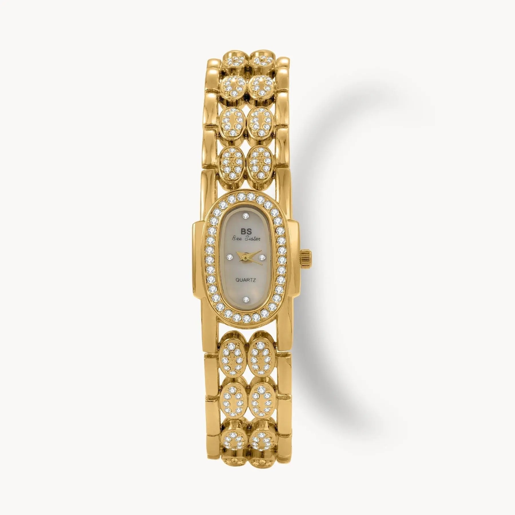 We use stainless steel with a premium layer of 18k gold plating, and each stone is carefully placed according to the design.